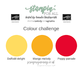 Happy Saturday, wow weekends do come around fast! Every Saturday I am sharing the colour challenge set on the Wednesday before in Stampin for all facebook group. Every week I set this colour inspiration to help get everyone looking at different colour combinations and help the creative juices flow.